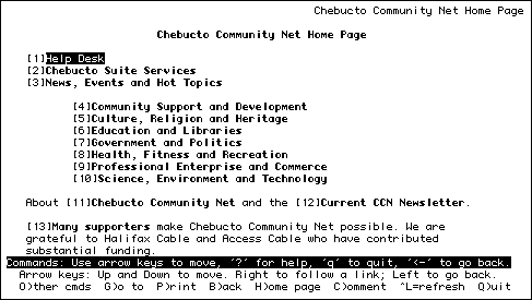 The Chebucto Community Net homepage is a good example of text based functionality.
