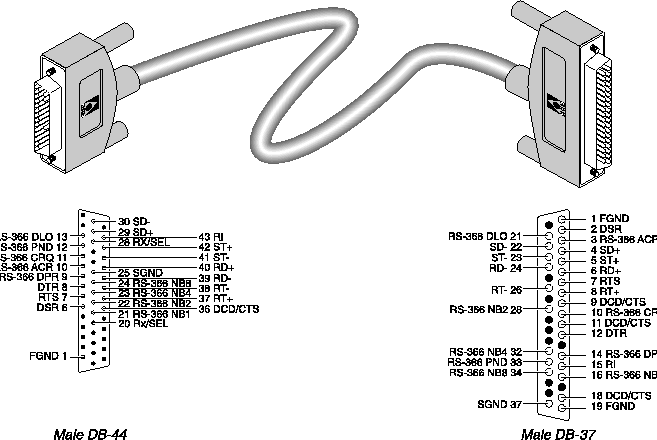 Ascend supplies a variety of RS-366 cables. The sections that follow list the pinouts for different types of RS-366 cabling. RS-449 / RS-366 / DB-37 cable to Video Telecom