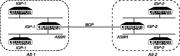 An AS border router (ASBR) is required to communicate with other autonomous systems by using an external gateway protocol (EGP), as shown in Figure 11-1. An EGP acts as a shuttle service between autonomous systems.