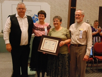 | Enjoying the moment on the floor | Beth and John Dickinson receive the Mayflower Award. |