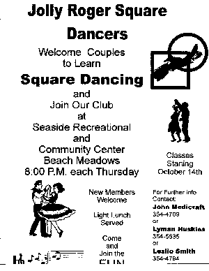 Harlan and Margaret have been square dancingsince 1968 when they joined the class of the TartanTwirlers. After the Tartans dissolved in the springof 1985, the Yorkes joined the Lake City Swingers. Although conflicting time schedules only allowedthem to dance with the Lake City Swingers for threeyears, Harlan has continued to contribute theblueberries for the 'Swing Into Fall' dance eversince. They also danced Plus with the Eager Eightsduring all of the club's existence (1979-1988) andwere in the first graduating class of the Sail SetsAdvanced Dancers. They have been loyal anddedicated members of the Sail Sets since 1985,assisting with every class and helping with hallarrangements since the club has danced atGrosvenor Wentworth Park School.