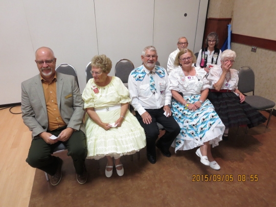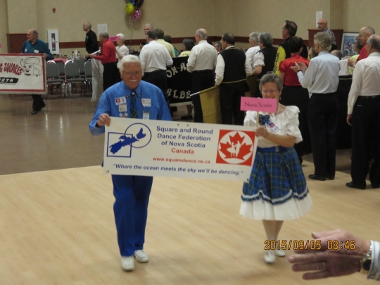 The Canadian Square and Round Dance Society held its 2015 AGM in Lacombe, Alberta, calculated to coincide with the Alberta Annual Square and Round Dance Convention. Maritimers were prominent, as Past President couple Bob and Inge Ruohoniemi (Nova Scotia) and current President couple Eric and Dianne McCormack (New Brunswick) attended the AGM and also participated in the Convention Banner Parade. Want to know what goes on at a Society AGM? Click here for a summary.