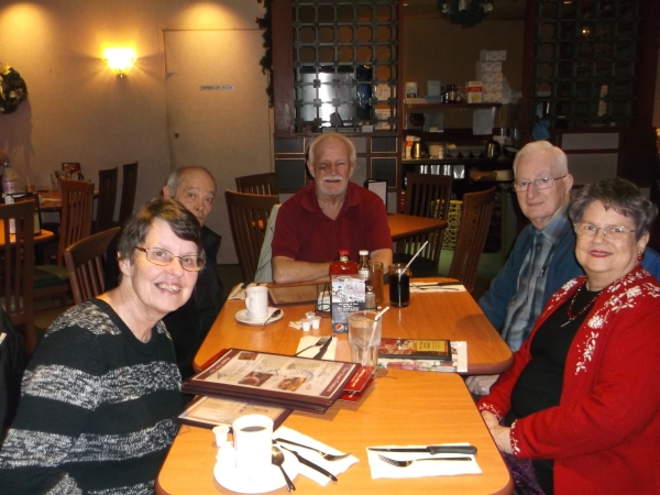 Members of the former Good Time Dancers square dance club finally managed to get together over supper at the Steak and Stein restaurant in Dartmouth last December. Health issues and time conflicts were responsible for a long delay. Present from left to right were Carol and Don Scott, club caller Harry Lofgren, and David and Judy Nickerson. A pleasant time was spent reminiscing over supper.
