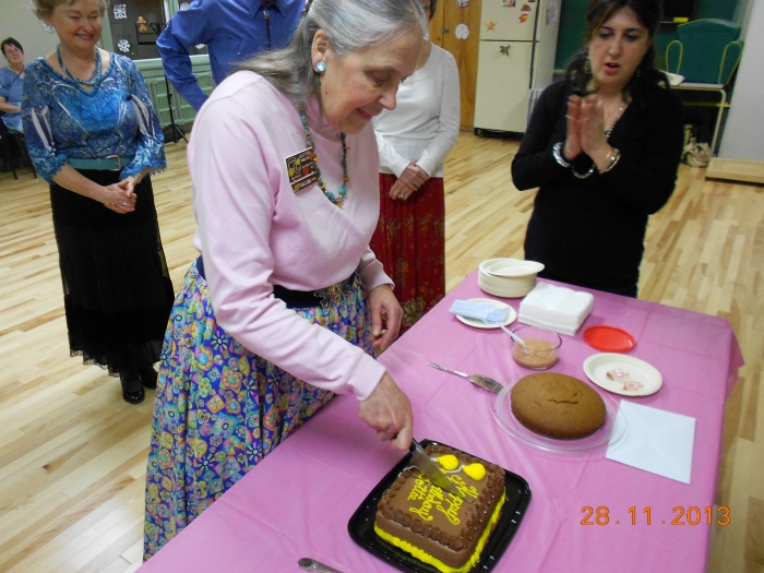 On November 28 club caller Dottie Welch was treated to a surprise birthday party at the regular Thursday night dance, celebrating one of life's milestone birthdays (see below) as well as 30 years as a square dance caller and 40 years as a dancer. Where does the time go?