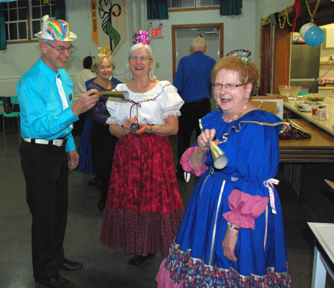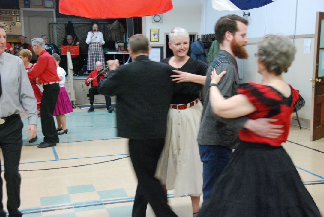 A small but happy group chowed down on a delicious pot luck supper at St. Andrews Presbyterian Church in Dartmouth, then danced until time for midnight celebrations, slurping up special punch between tips. The first tip of 2019 followed the usual midnight craziness.
