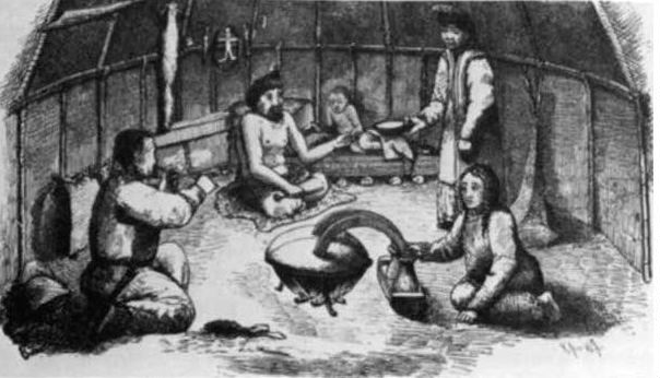 The arrangement of the kibitka's interior space expresses two principles.