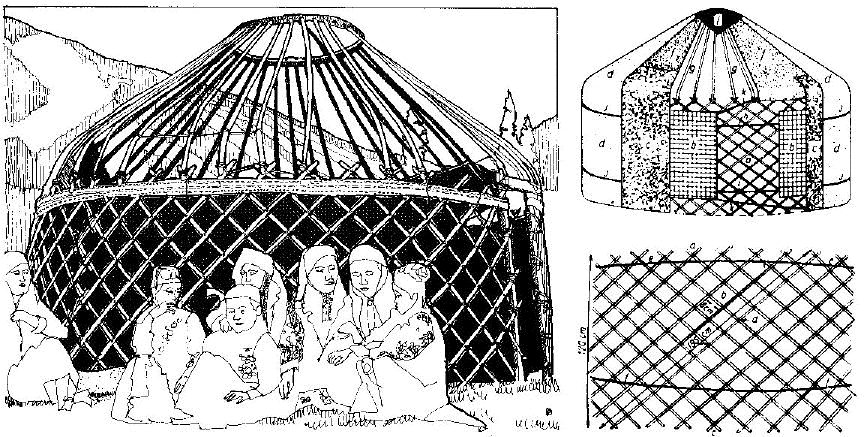 dome-shaped roof of the Turkic type but lack the lattice wall frame. These