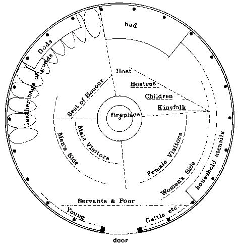 of the tent in the vicinity of the door, and second, social, ceremonial