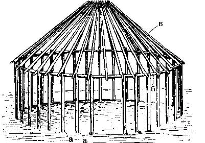 The kibitka-like tent in which a simplified wall of vertical posts or