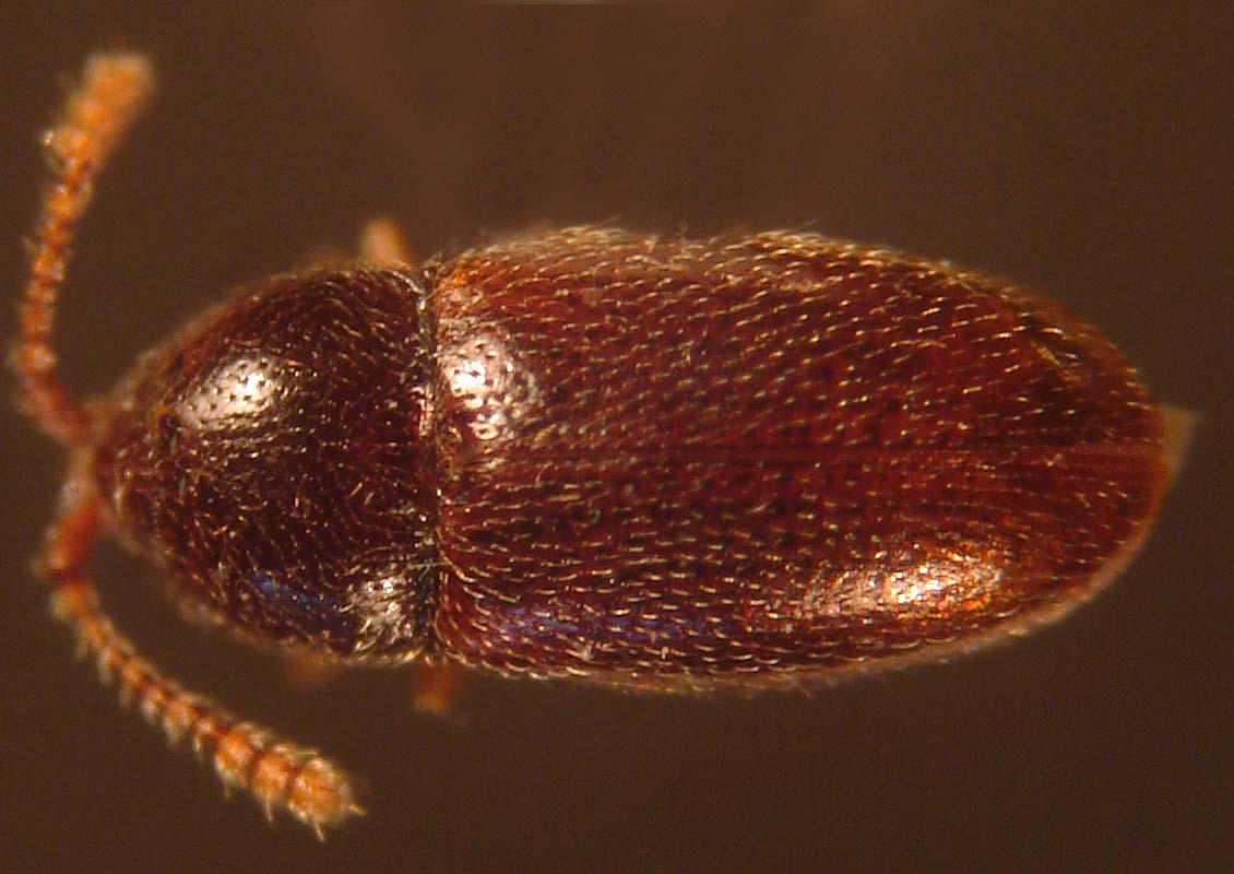 The genus Atomaria is one of 8 genera in the family Cryptophagidae, the silken fungus beetles, found in Atlantic Canada. Atomaria is the only genus in the subfamily Atomariinae LeConte, 1861 found in this region (although the Palearctic Ephistemus globulus (Paykull) is recorded from Ontario. They are small (1.0-2.0 mm), somewhat shiny, oval-oblong, sparsely pubescent beetles typically found in leaf litter, grass litter and in decaying vegetation and in habitats which promote mycelial fungal growth.