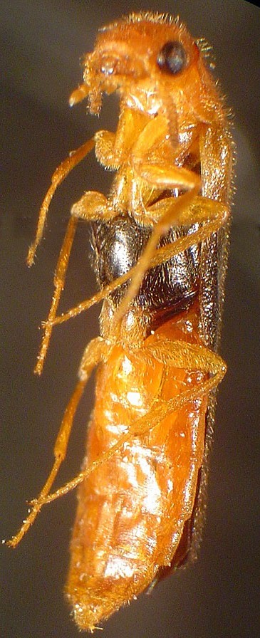 Elateroides lugubris (Say) (the so-called "sapwood timberworm') is a member of the unusual family, the Lymexylidae - the ship-timber beetles. There are only two (or perhaps three) species in this family known from North America. In the Atlantic region it is known from New Brunswick, Nova Scotia and Newfoundland. In Nova Scotia there are only a small number of scattered records (Cumberland, Halifax, and Kings counties). They are infrequently encountered and Young (2002) notes that adults are probably short-lived.