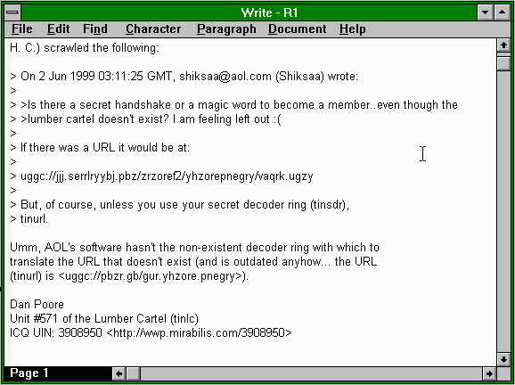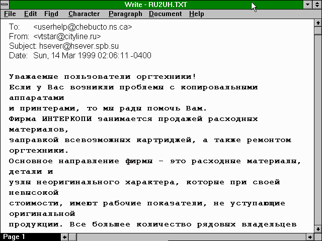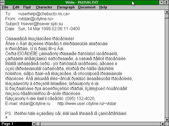 A message to userhelp arrived in my mailbox last March that I couldn't