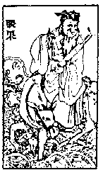 Han Chung-li represents military men. He lived during the Han dynasty when he was a Marshall of the Empire. In his old age he became a hermit and lived on Yang-chiu Mt. in Shansi where he met the Five Heroes who taught him how to be an immortal. This knowledge he taught to Lu Tung-pin.