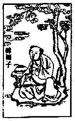 One day Han Ching-li and Lu Tung-pin found him and asked him what he was doing. He replied that he was studying the Tao. "What is that and where is it?" they asked. He pointed first to the sky and then to his heart. Then they realized that he understood and they gave him the recipe for perfection.