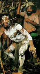 The 50 hectare theme park simulates the bush in the Dark Continent. Players are given spears, stun guns, and nets and have two hours to return to the starting gate with a bagged 'bushman'. These are out-of-work actors who smear themselves with chalk and get 50 bucks an hour to outwit the 'hunters'. When a hunter finds one he has to bring him in and usually the only way they can do that is to truss him up like a pig. It gets pretty hairy at times and and a lot of blood can be spilled but the hunters get the thrill they paid for. "Can you see us adapting this game so that guys in wheelchairs can play being hunters?" asked Mr. Outhaus.